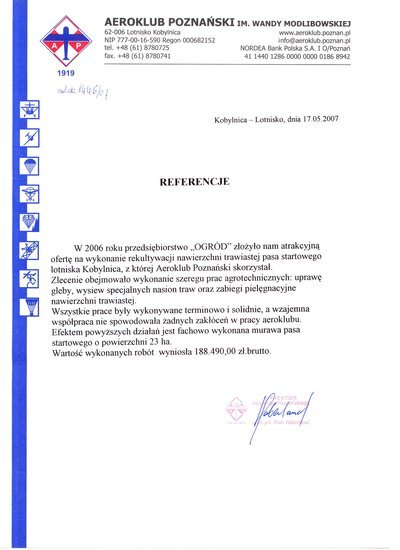 Aeroklub Poznański im. Wandy Modlibowskiej Lotnisko Kobylnica 62-006